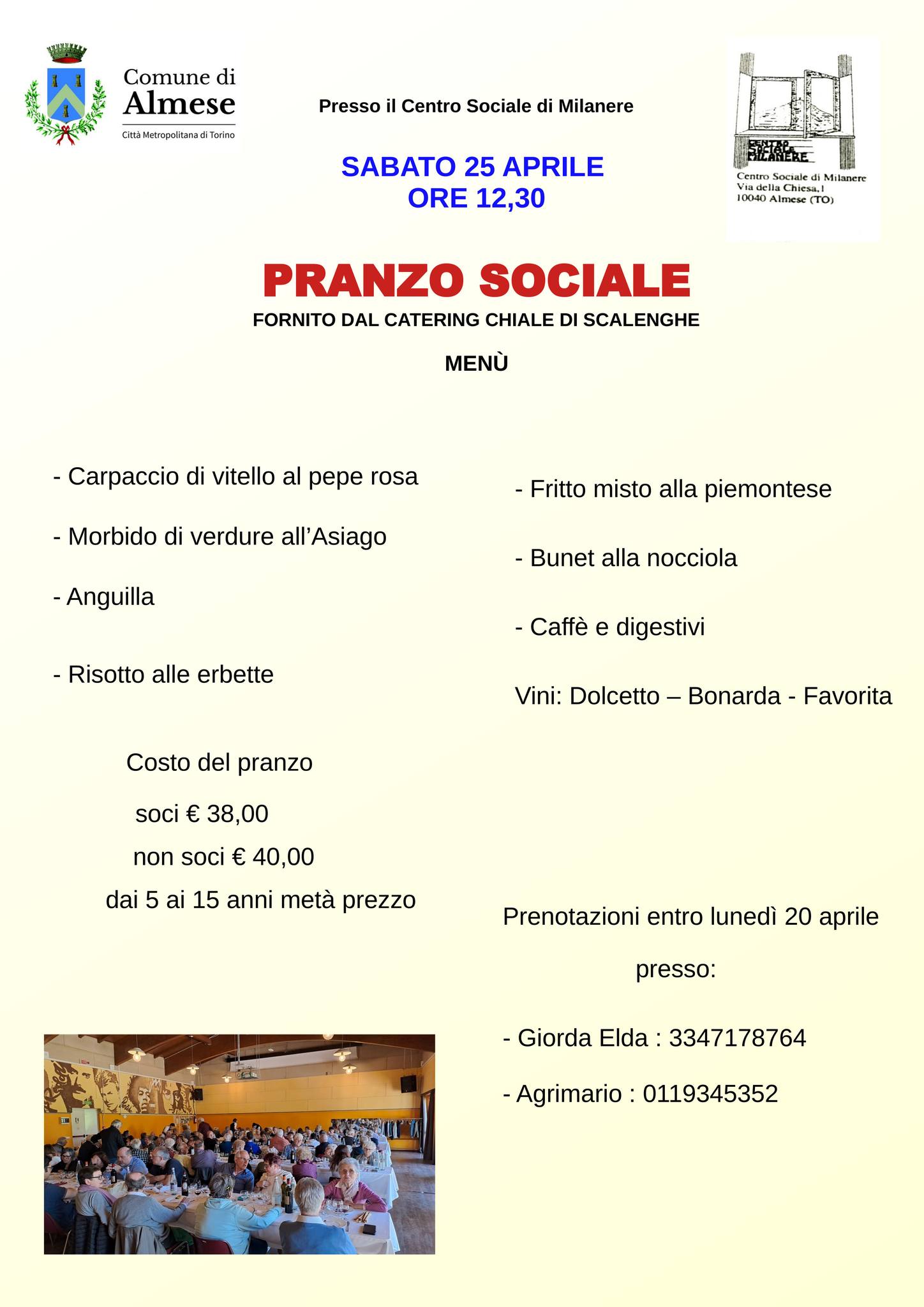 Pranzo sociale a cura dell’Associazione Centro Sociale di Milanere